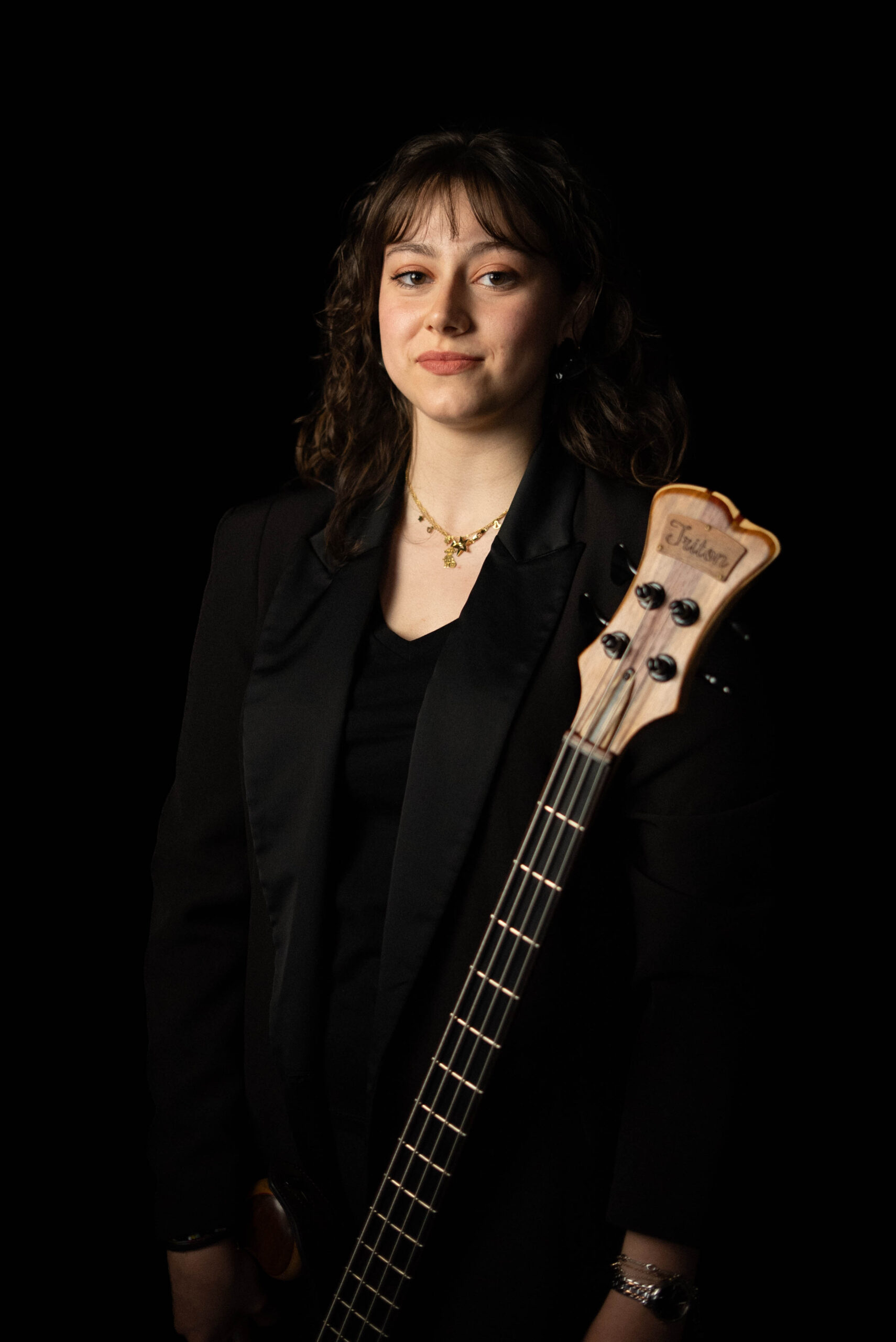 “Mi relación con la música ha tenido sus altibajos, pero desde siempre me he sentido muy conectada emocional y espiritualmente con mi instrumento, que llevo tocando desde pequeña. Normalmente el bajo resulta poco llamativo para los niños a la hora de iniciar su formación musical pero no me arrepiento de mi decisión , pues con los años me di cuenta de que su papel es imprescindible en la banda. Estudié bajo y solfeo en el CDM (Centro de Desarrollo Musical) en Ponteareas con Iris, con quien comparto además otros proyectos musicales y artisticos”